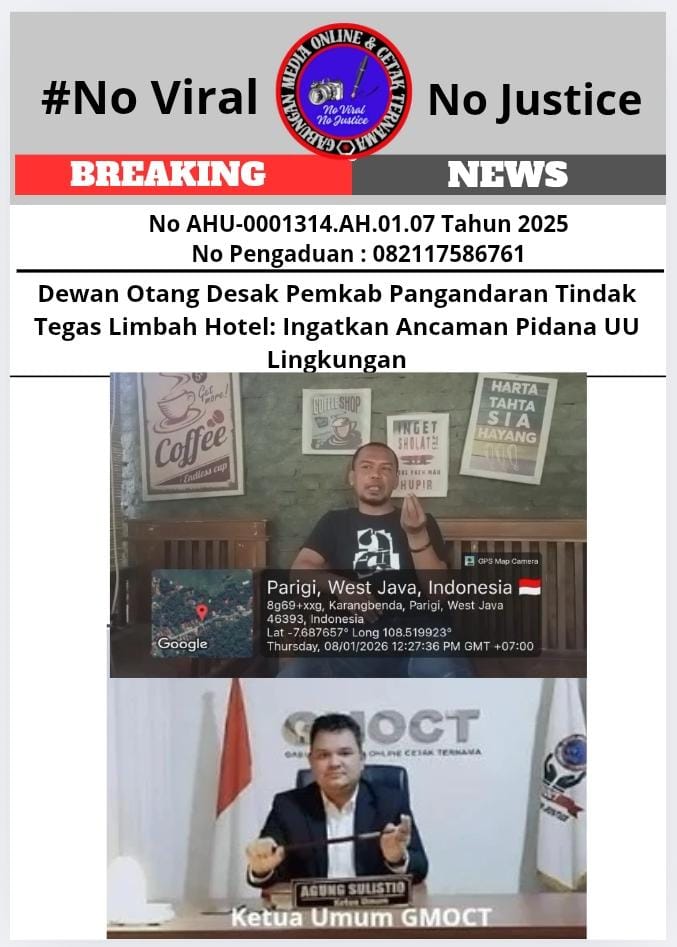 Pangandaran, (GMOCT) – centralpers – Permasalahan limbah industri perhotelan di Kabupaten Pangandaran kembali menjadi sorotan serius. Dewan Otang, politisi Partai Kebangkitan Bangsa (PKB), menegaskan bahwa pengelolaan limbah hotel dan restoran di daerah wisata tersebut masih jauh dari standar yang diatur dalam peraturan perundang-undangan.