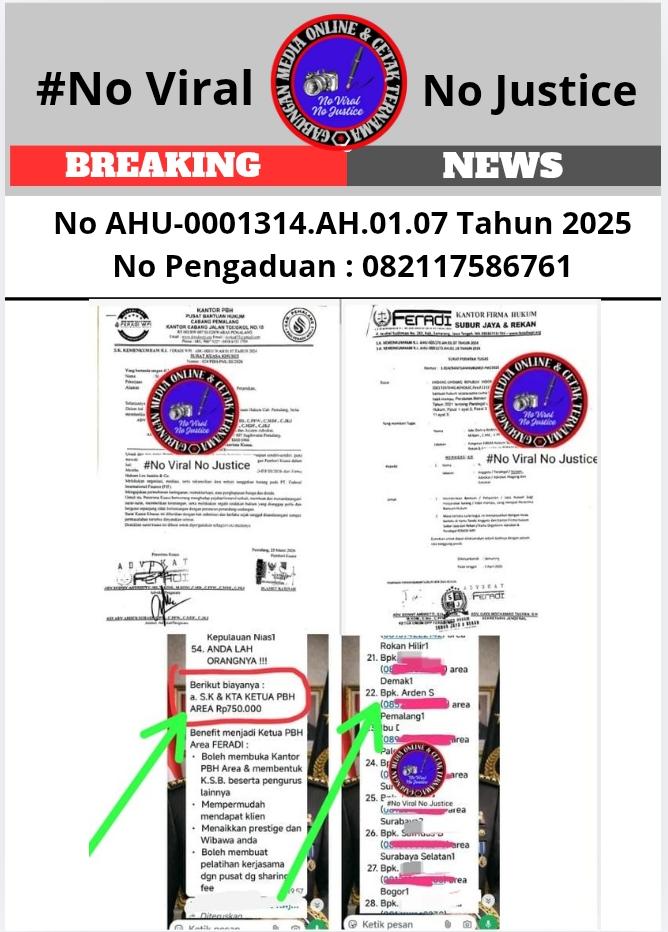 Semarang, (GMOCT) – centralpers – Polemik internal organisasi Feradi WPI Paralegal mencuat ke publik setelah seorang anggota berinisial AS dilaporkan ke Polda Jawa Tengah atas dugaan pemalsuan dokumen dan tanda tangan. Kasus ini memicu pertanyaan serius terkait transparansi organisasi, tata kelola internal, hingga dugaan praktik tidak sehat di tubuh lembaga tersebut.