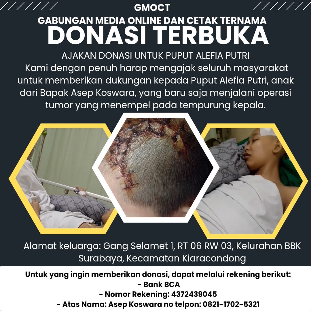 Kami dengan penuh harap mengajak seluruh masyarakat untuk memberikan dukungan kepada Puput Alefia Putri, anak dari Bapak Asep Koswara, yang baru saja menjalani operasi tumor yang menempel pada tempurung kepala.