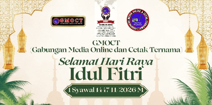 Jakarta, (GMOCT) – centralpers – Gabungan Media Online dan Cetak Ternama (GMOCT) mengucapkan selamat Hari Raya Idul Fitri 1 Syawal 1447 Hijriah/2026 Masehi kepada seluruh umat Islam di Indonesia dan dunia. Pesan ucapan tersebut disampaikan melalui materi promosi dengan desain yang memperlihatkan ornamen khas kemewahan Ramadan dan Idul Fitri, serta logo GMOCT beserta beberapa mitra kerja yang terlibat.