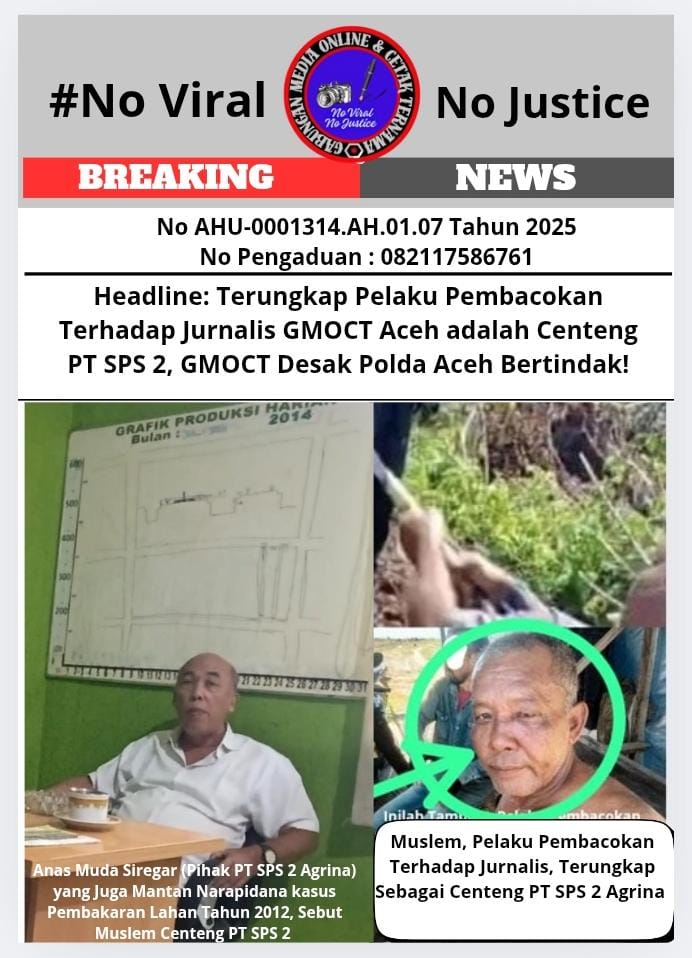 Headline: Terungkap Pelaku Pembacokan Terhadap Jurnalis GMOCT Aceh adalah Centeng PT SPS 2, GMOCT Desak Polda Aceh Bertindak!
