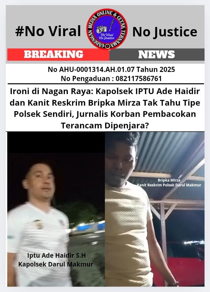 Ironi di Nagan Raya: Kapolsek IPTU Ade Haidir dan Kanit Reskrim Bripka Mirza Tak Tahu Tipe Polsek Sendiri, Jurnalis Korban Pembacokan Terancam Dipenjara?