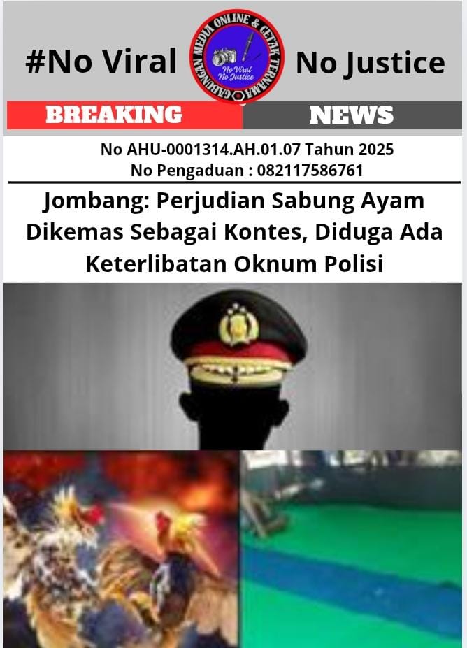 Jombang, (GMOCT) – centralpers – Aktivitas perjudian sabung ayam yang dikemas sebagai kontes laga dengan hadiah kambing kembali menjadi sorotan publik di Kabupaten Jombang, Jawa Timur. Kegiatan tersebut berlangsung di Dusun Sendang Rejo, Desa Banjardowo, Kecamatan Jombang, wilayah hukum Polres Jombang, dan diperoleh dari informasi media online Katatribun.id yang tergabung dalam GMOCT.