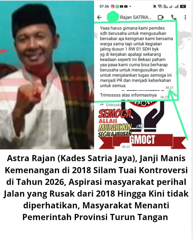 Namun hingga tahun 2026, kondisi nyata di lapangan jauh dari harapan. Seperti yang pernah diberitakan oleh Penajournalis.com pada 10 Maret 2026 dengan judul “Jalan Desa Rusak Parah, Kades Satria Jaya Rajan Disinyalir Abadi dalam Kebiasaan Menolak Perhatian”, masyarakat terus mengeluhkan kondisi jalan yang rusak dan belum mendapatkan perbaikan.