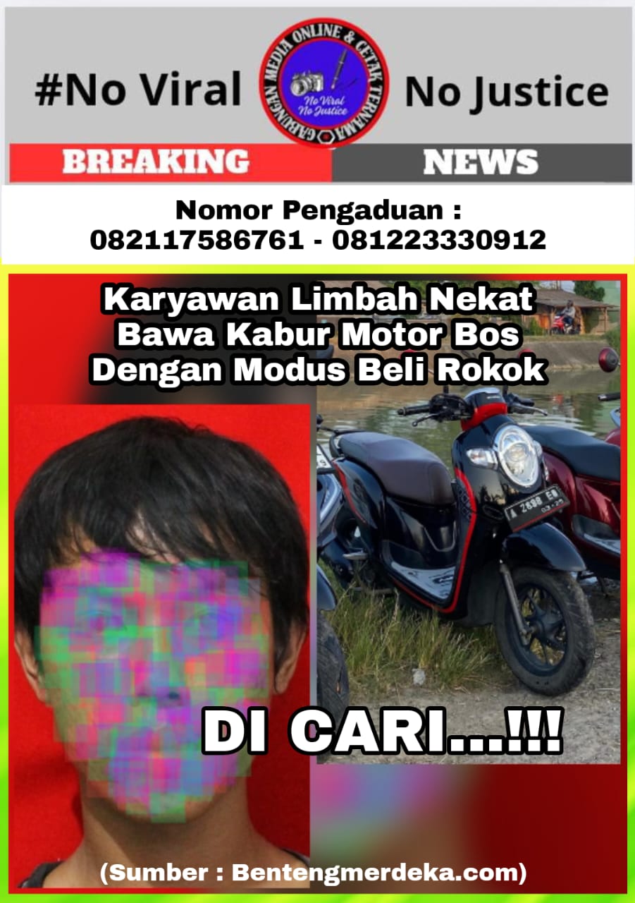 Serang, Banten (GMOCT) – centralpers – Seorang karyawan Limbah berinisial DN, warga Tambak Pasir, Kecamatan Kibin, Kabupaten Serang, tega membawa kabur sepeda motor milik bosnya sendiri, Nono, warga Desa Blokang, Kecamatan Banding. Peristiwa ini terjadi pada Kamis (2/10/2025).