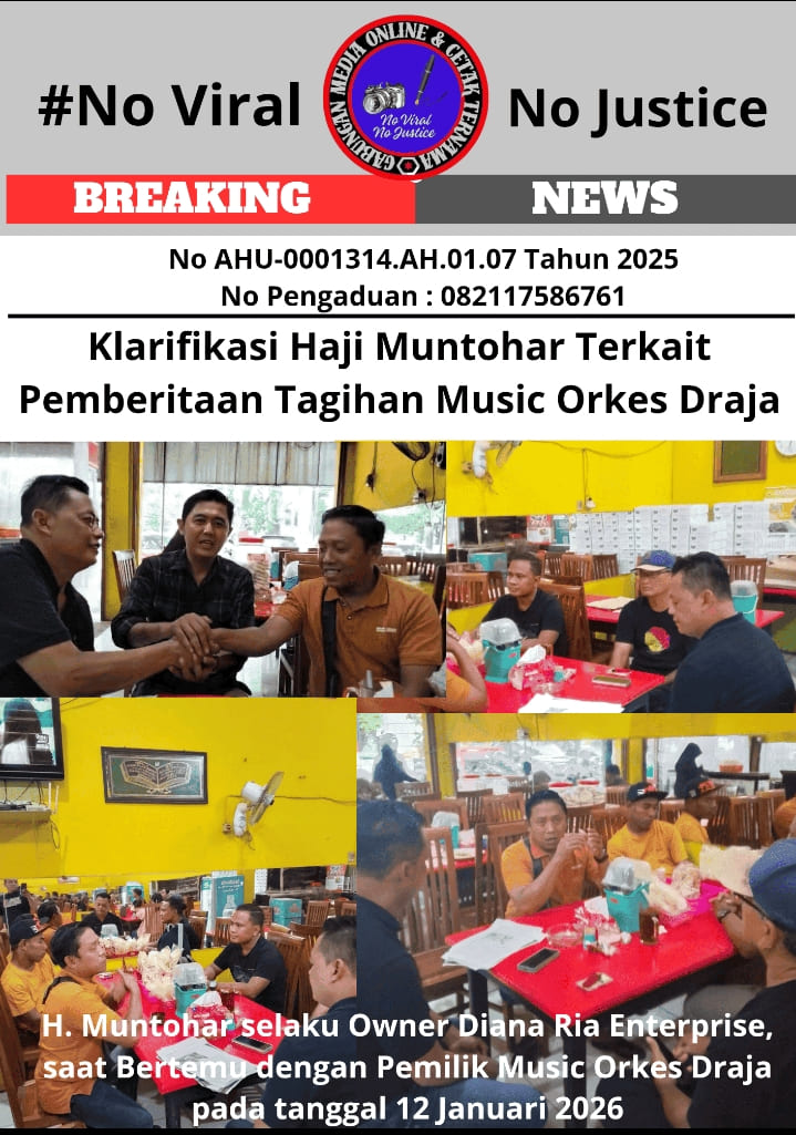 Semarang, (GMOCT) – centralpers – Haji Muntohar, selaku Owner Diana Ria Enterprise, mengeluarkan klarifikasi terkait pemberitaan yang tayang di salah satu media online pada 11 Januari 2026 dengan judul “Parah! Seorang Anggota Dewan Dari Partai Gerindra Belum Membayar Gelar Music Orkes Draja”.