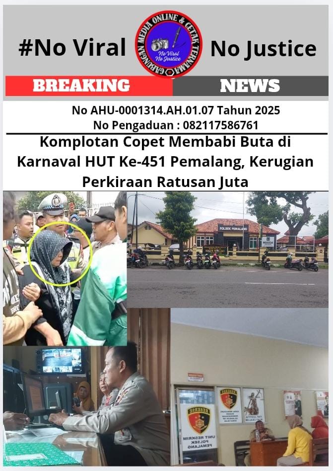 Pemalang, (GMOCT) – centralpers – Gabungan Media Online dan Cetak Ternama (GMOCT) mendapatkan informasi dari salah satu anggotanya, media online Detikperistiwa, bahwa puluhan emak-emak mengalami kecopetan saat mengikuti acara Karnaval Kirab Gunungan Hasil Bumi dalam rangka memperingati Hari Jadi ke-451 Kabupaten Pemalang Tahun 2026, Minggu (25/1/2026).