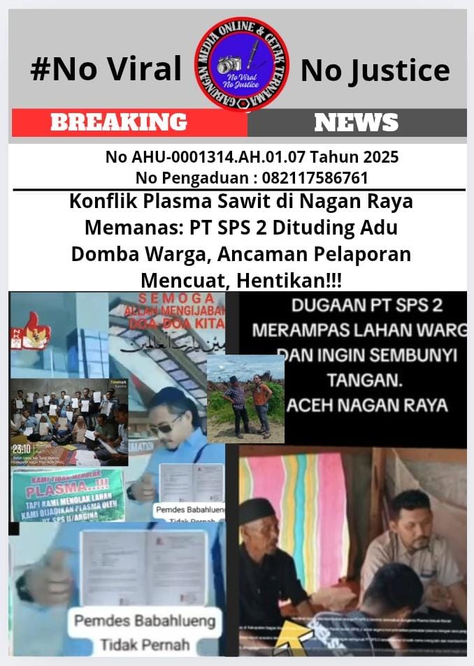 Nagan Raya, (GMOCT) – centralpers – Polemik berkepanjangan terkait plasma sawit di Kabupaten Nagan Raya kembali mencapai titik didih. PT Surya Panen Subur (SPS) 2 didesak untuk menghentikan praktik yang dianggap sebagai upaya adu domba antarwarga dalam penyelesaian masalah plasma. Desakan ini muncul dari berbagai pihak yang menilai bahwa tindakan tersebut justru memperkeruh suasana dan berpotensi memicu konflik horizontal di tengah masyarakat.