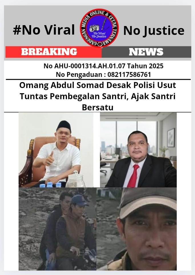 Majalengka, (GMOCT) – centralpers – Tokoh muda Majalengka, Omang Abdul Somad, mendesak pihak kepolisian untuk mengusut tuntas kasus pembegalan yang menimpa seorang santri di Kabupaten Majalengka. Ia juga mengajak seluruh santri untuk bersatu dan tidak bergerak sendiri dalam menghadapi permasalahan.