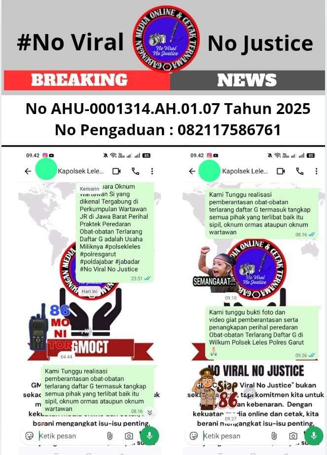 Garut, (GMOCT) – centralpers – Setelah pemberitaan terkait dugaan kerjasama oknum wartawan yang dianggap “hukum milik nenek moyangnya” serta tuduhan bahwa praktek peredaran obat-obatan terlarang Daftar G merupakan usaha milik oknum wartawan tergabung di Perkumpulan Wartawan JR Jawa Barat menjadi viral di puluhan media online dan cetak yang tergabung dalam Gabungan Media Online dan Cetak Ternama (GMOCT), Kapolsek Leles AKP Wawan S.H. memberikan tanggapan.