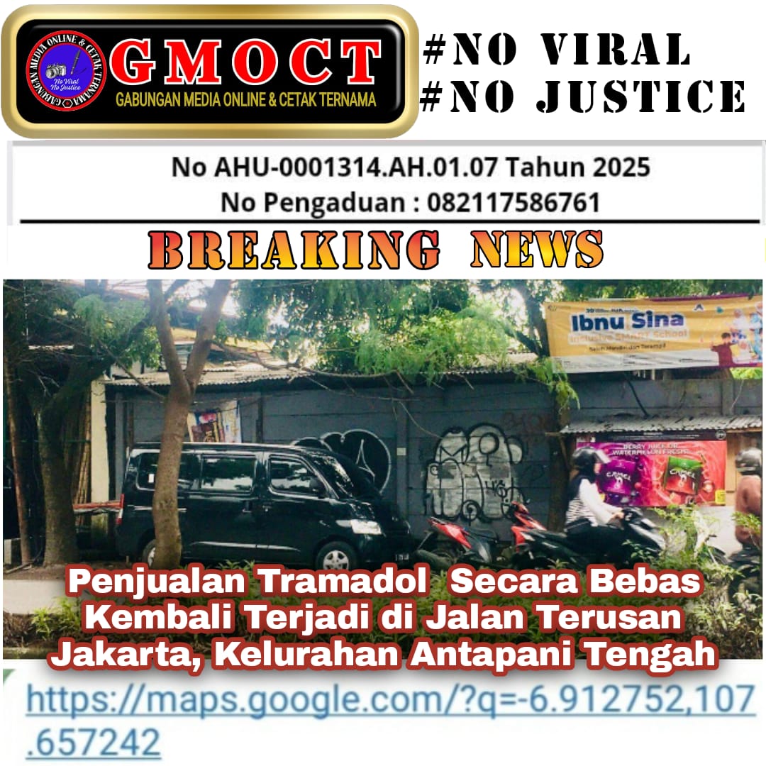 Kota Bandung, (GMOCT) – centralpers – Penjualan tramadol secara ilegal kembali terjadi di Jalan Terusan Jakarta, Kelurahan Antapani Tengah, Kecamatan Antapani, Kota Bandung. Informasi ini didapat dari Redaksi Reportasejabar.com yang tergabung di Gabungan Media Online Cetak Ternama (GMOCT). Kamis (29/01/2026)