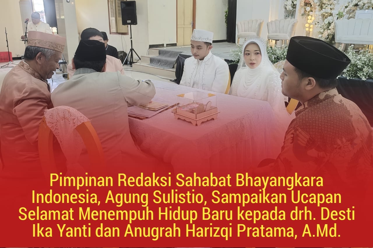 Bantul – centralpers – Agung Sulistio, selaku Pimpinan Redaksi Sahabat Bhayangkara Indonesia (Kabarsbi.com), sekaligus Ketua Umum Gabungan Media Online Cetak Ternama (GMOCT) dan Ketua II Lembaga Perlindungan Konsumen Republik Indonesia (LPK-RI), menyampaikan ucapan selamat yang penuh makna atas pernikahan keponakannya tercinta, drh. Desti Ika Yanti, dengan Anugrah Harizqi Pratama, A.Md., pada Minggu, 07 Desember 2025. Dengan perasaan bangga dan haru, ia mendoakan agar ikatan yang terjalin menjadi awal perjalanan rumah tangga yang kokoh dan diridhai Allah SWT.