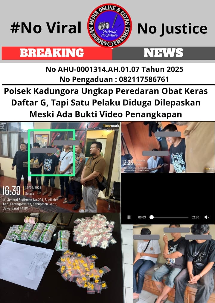 Kabupaten Garut, Jawa Barat (GMOCT) – centralpers – Polsek Kadungora berhasil mengungkap kasus dugaan peredaran obat keras daftar G tanpa izin resmi pada Selasa (10/2/2026) sekitar pukul 15.53 WIB. Penangkapan dilakukan di Warung Jl. Raya Pasar Baru Kadungora No.168 RW/70 Karangmulya, Kecamatan Kadungora.