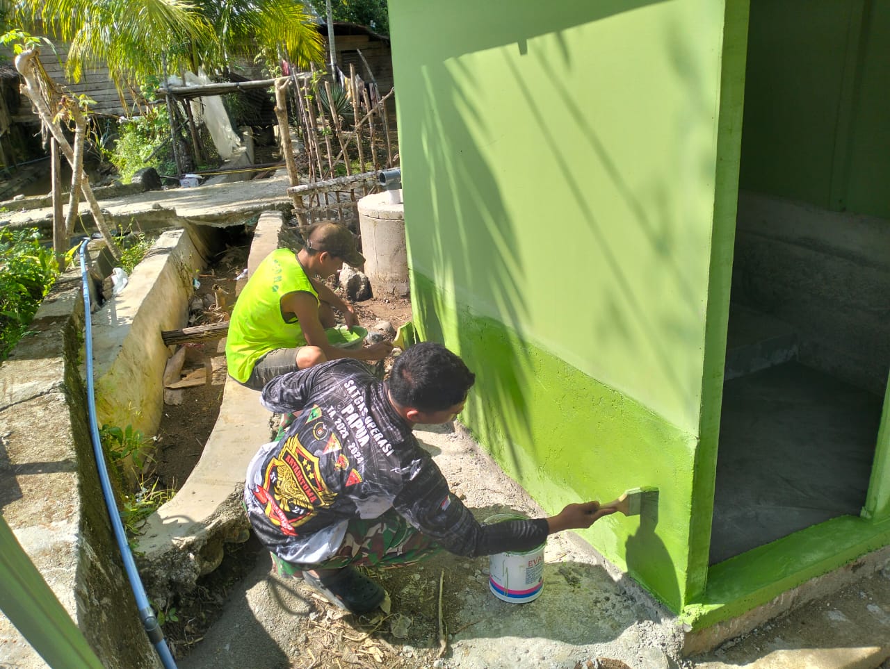 Tahap pengecatan menjadi penanda bahwa pembangunan tidak hanya mengejar berdirinya bangunan, tetapi juga memastikan kerapian, kekuatan, dan kenyamanan bagi masyarakat. Seperti kain yang telah dijahit rapi, kini bangunan-bangunan itu mulai diberi warna agar tampil layak dan siap digunakan.