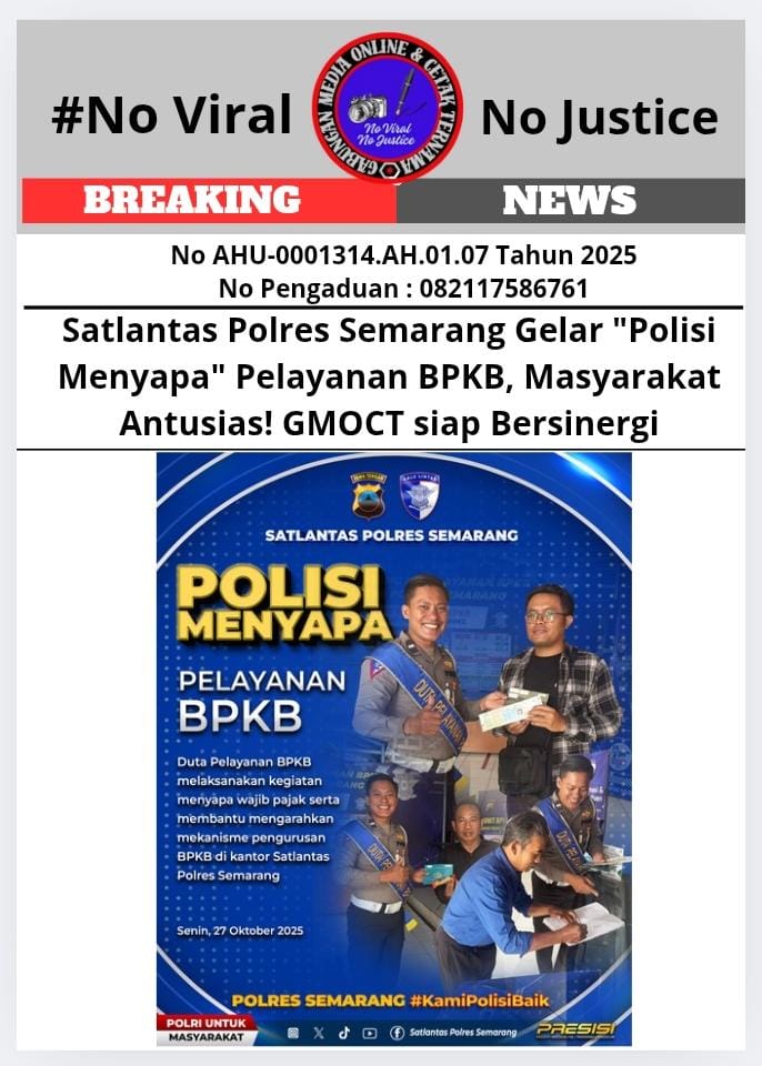 Satlantas Polres Semarang Gelar “Polisi Menyapa” Pelayanan BPKB, Masyarakat Antusias! GMOCT siap Bersinergi