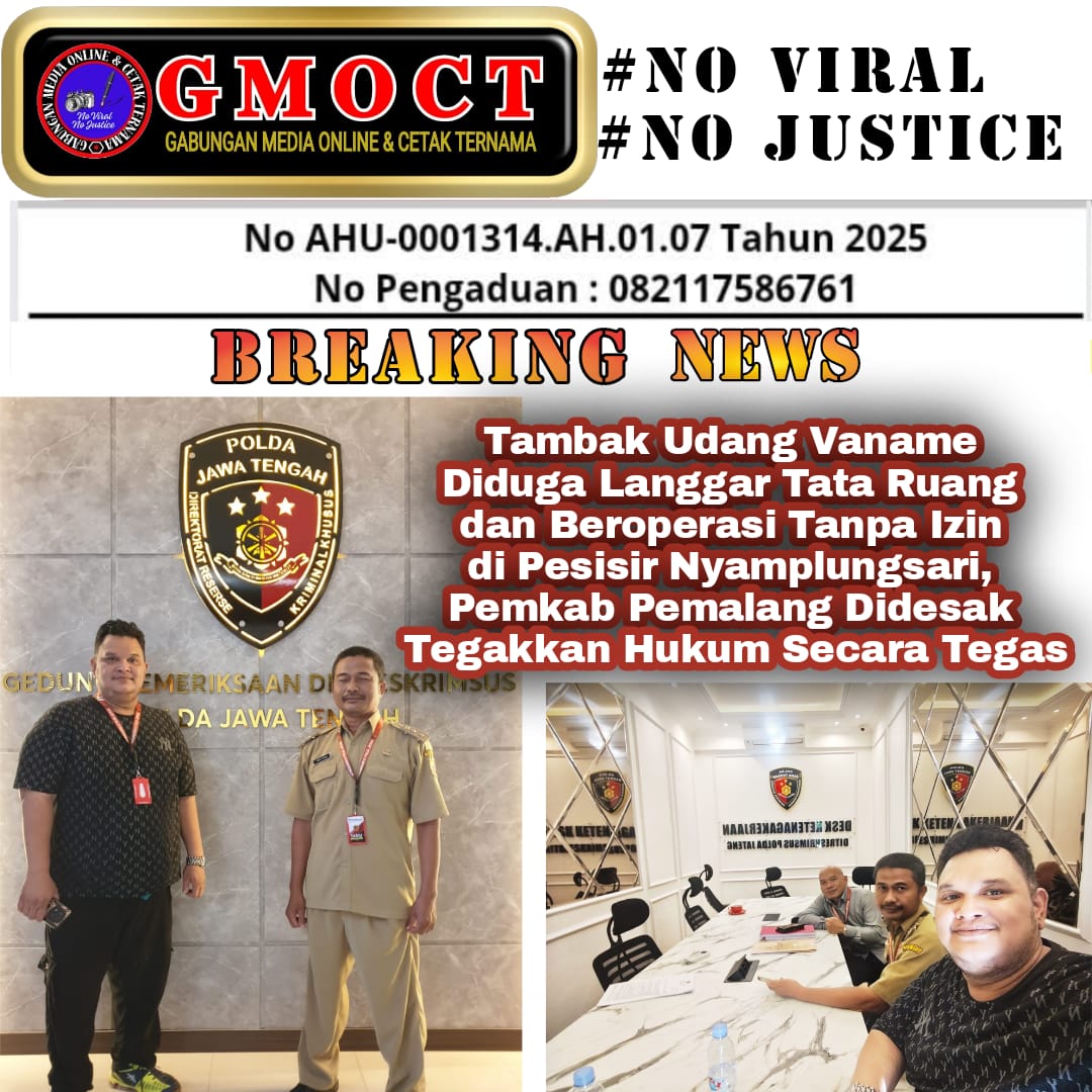 Atas dasar tersebut, GMOCT bersama kuasa hukum Kepala Desa Nyamplungsari, Bambang L.A. Hutapea, S.H., M.H., C.Med., mendesak Pemerintah Kabupaten Pemalang untuk segera melakukan evaluasi menyeluruh terhadap aktivitas tambak udang vaname di kawasan tersebut. Mereka meminta pemerintah menghentikan kegiatan usaha yang tidak sesuai ketentuan, melakukan penertiban, serta menjatuhkan sanksi administratif sesuai peraturan perundang-undangan. Masyarakat berharap pemerintah daerah tidak bersikap reaktif, melainkan mengambil langkah tegas, profesional, dan berkelanjutan demi melindungi kawasan pesisir sebagai ruang hidup, sumber penghidupan, serta benteng keselamatan warga dari ancaman bencana di masa mendatang.