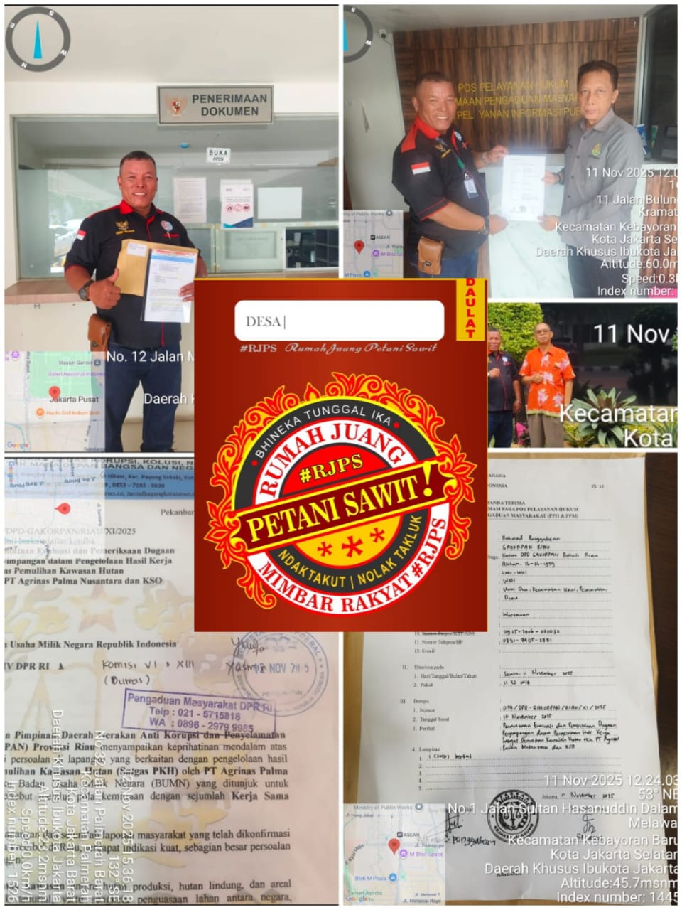 Ini dibuktikannya dengan mendatangi Kantor PT. Agrinas Palma Nusantara (Persero) di Jakarta dan melaporkan langsung kinerja PT. Agrinas Palma Nusantara (PT. APN) ke Komisi IV, VI, XIII DPR RI, Badan Pengaturan BUMN (dulunya Kementerian BUMN), Kejaksaan Agung Republik Indonesia (Kejagung RI) perihal Permintaan Evaluasi dan Pemeriksaan Dugaan Penyimpangan Dalam Pengelolaan Hasil Kerja Satgas Penertiban Kawasan Hutan (PKH) oleh PT. Agrinas Palma Nusantara dan KSO, pada Rabu (11/11/2025).