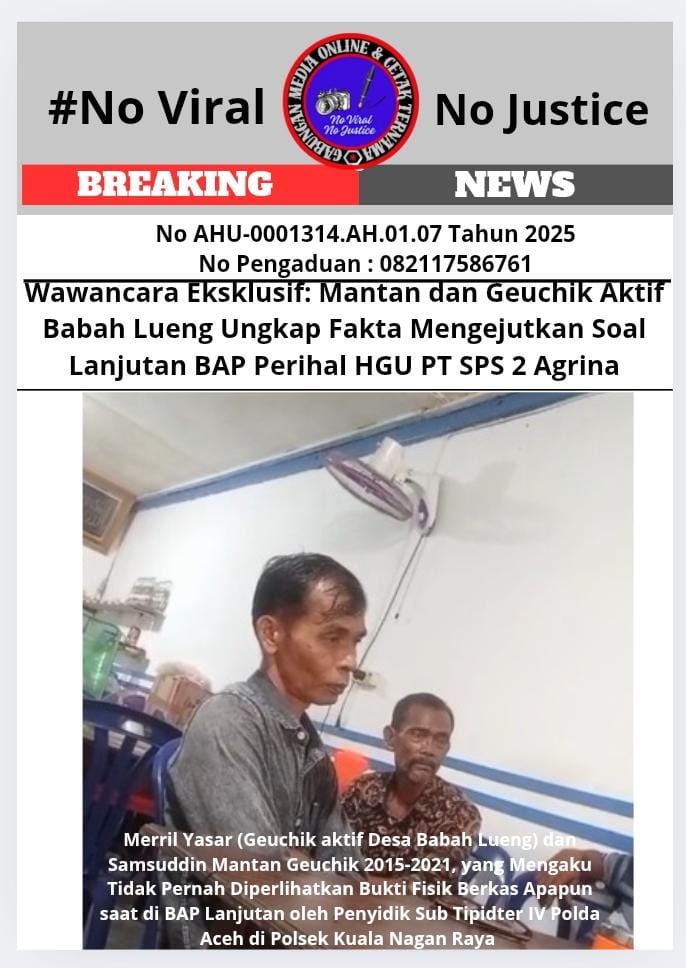 Wawancara Eksklusif: Mantan dan Geuchik Aktif Babah Lueng Ungkap Fakta Mengejutkan Soal Lanjutan BAP Perihal HGU PT SPS 2 Agrina